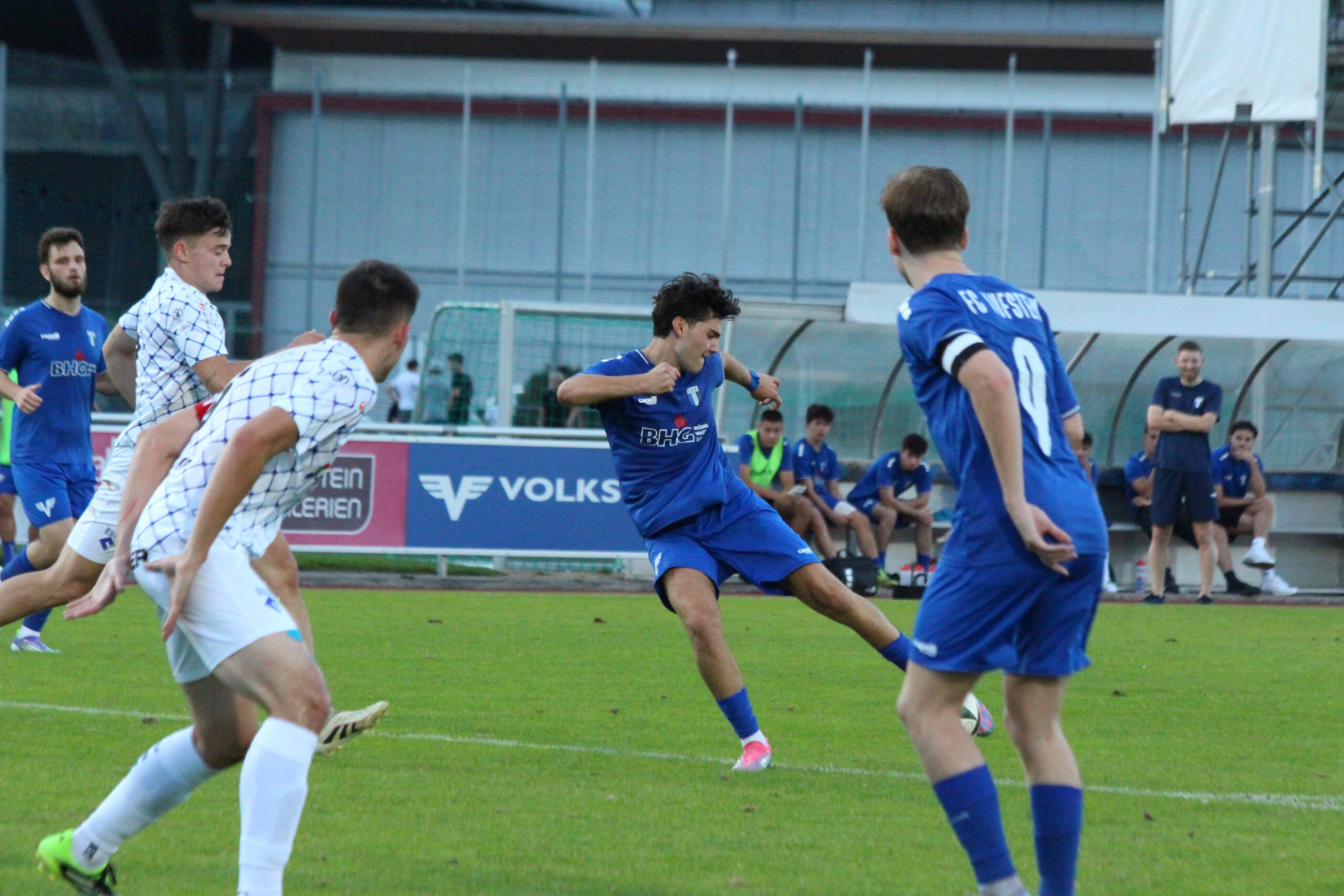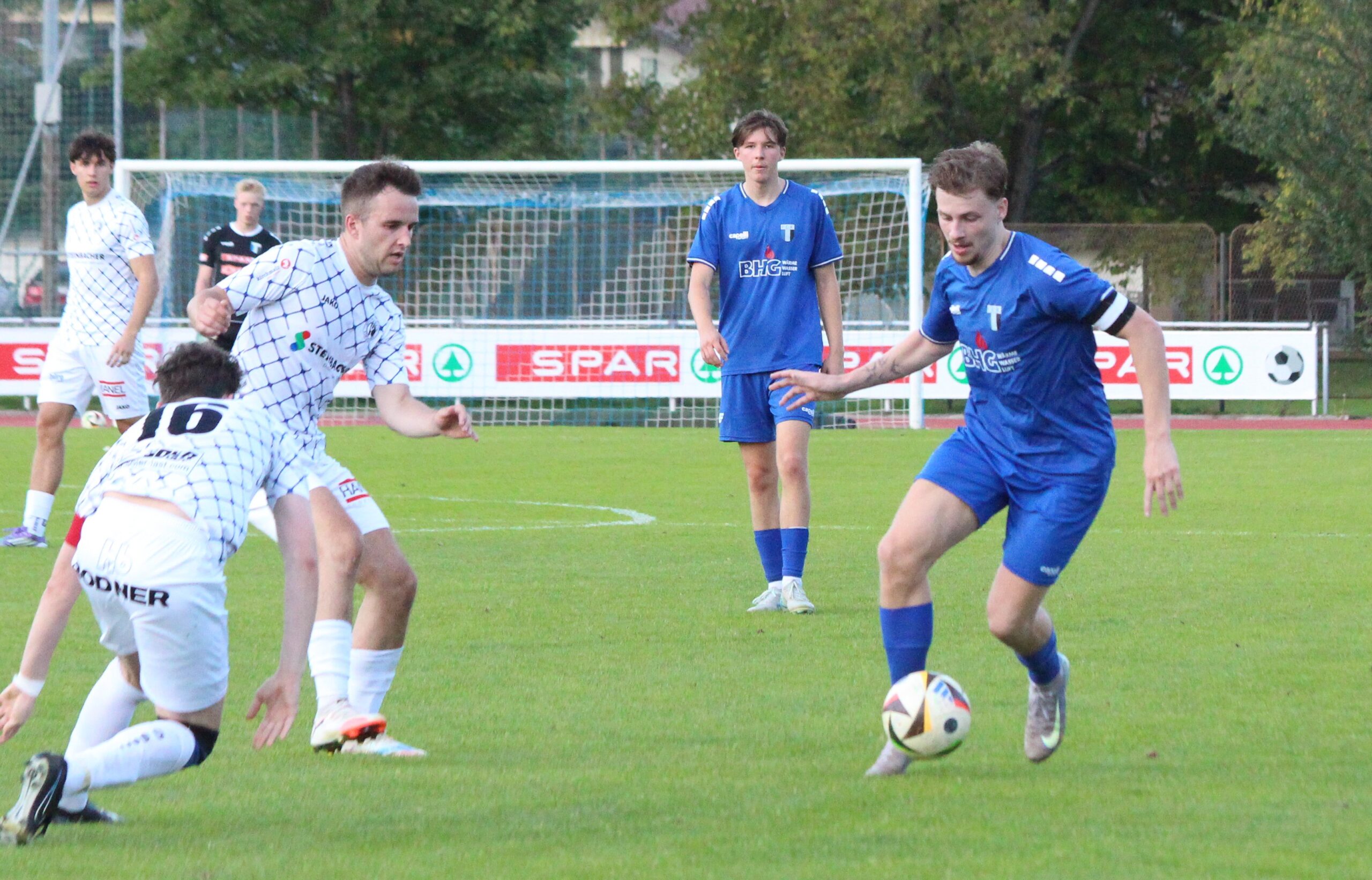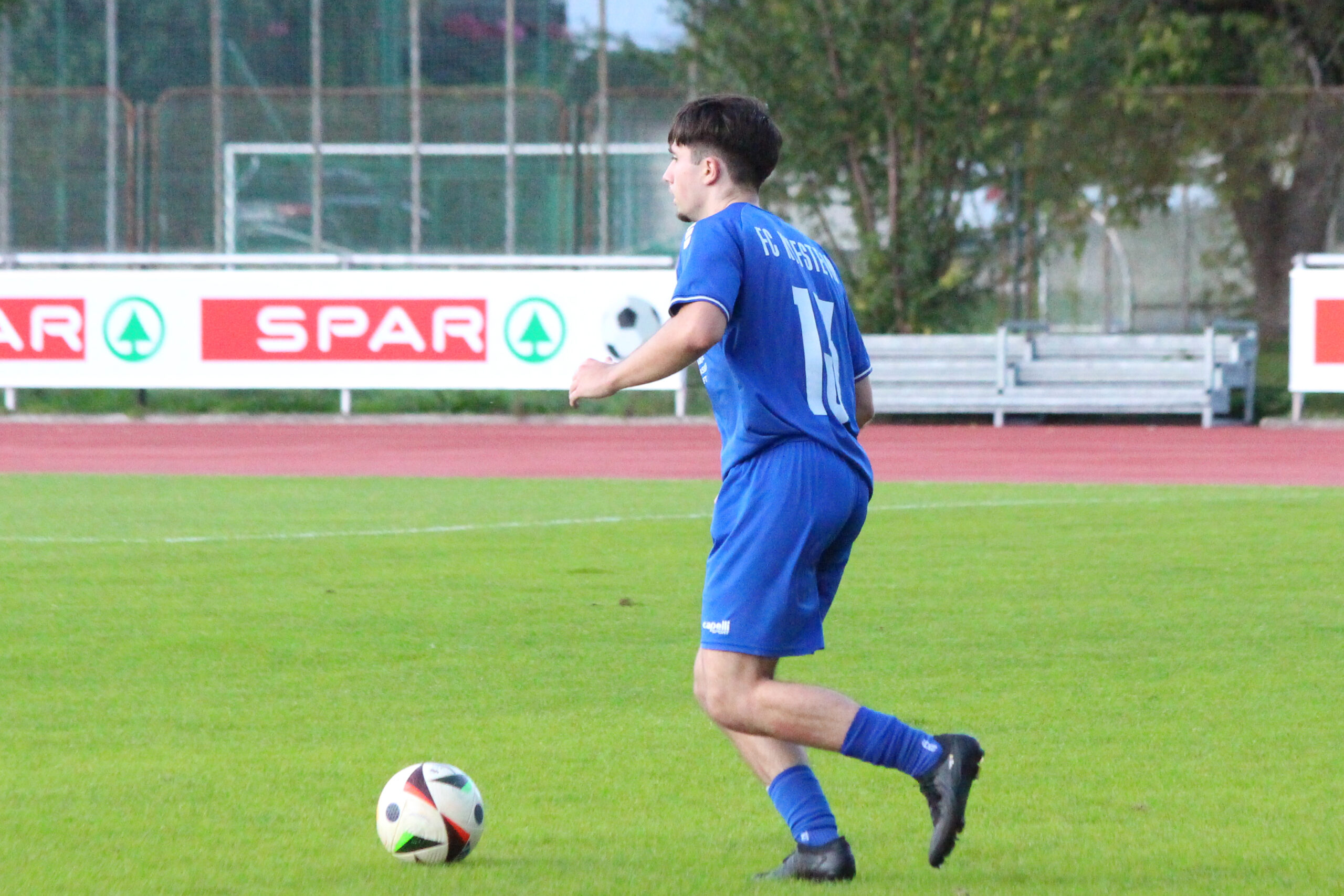 Die Gäste hatten bereits in Minute 7 nach einem Freistoß eine Großchance, doch Torhüter Pertl konnte mit einer tollen Parade die Führung verhindern. Die Jungs waren zwar bemüht, Linie ins Spiel zu bringen und machten sich das Leben durch viele individuelle Fehler schwer. Bei einem Stangenschuss, wieder im Anschluss an einen Freistoß und nachdem eine Kirchdorfer Spieler alleinstehend den Ball neben das Tor setzte, hatte unser Team abermals Glück. Nach einem Abwehrfehler gelang Cetinkaya in der 23. Minute die 1 : 0 Führung. Bis zur Pause wog das Spiel so hin und her, aber es ereignete sich nichts Nennenswertes.