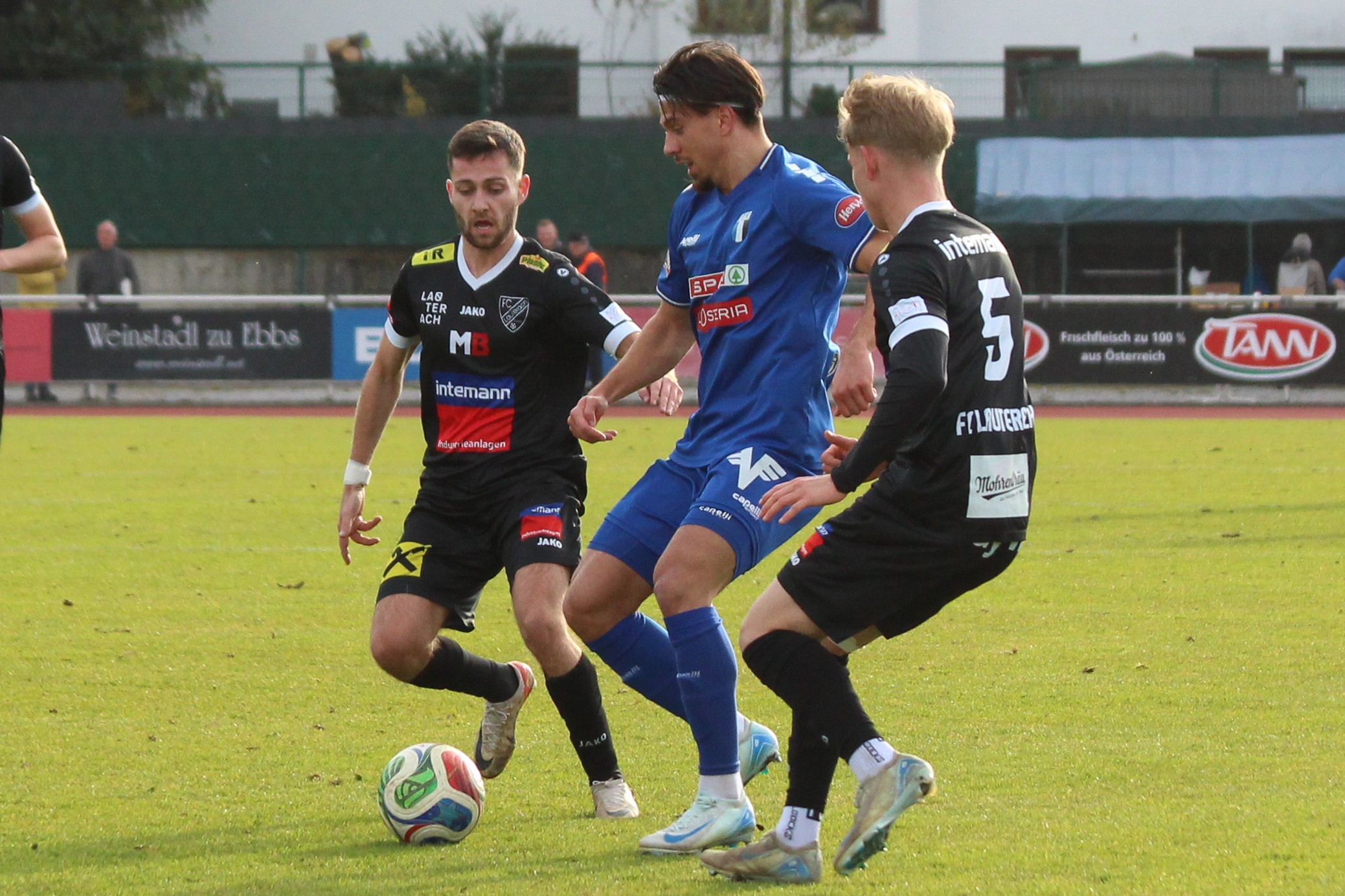 Bei strahlendem Sonnenschein lud der FC Kufstein zum letzten Heimspiel im Jahr 2025. Gegner war der FC Lauterach. In der ersten Halbzeit war unsere Mannschaft von Beginn an tonangebend. Immer wieder konnte man gefährliche Angriffe fahren, die oftmals auch in einem Torschuss endeten. Gerade in dieser Phase bewies unsere Mannschaft wieder mal was eigentlich in ihr steckt. Ein schöner Spielzug war es auch, der zur 1:0 Führung führte. Sahin Karayün spielte einen Ball in die Tiefe auf Kenan Smajlovic. Dieser verzögerte, und spielte zurück auf Karayün der hinterlief. Dessen Flanke versenkte der von der linken Seite einlaufende Stefan Lauf volley in die Maschen. Der Jubel war groß, konnte unsere Mannschaft endlich mal wieder in Führung gehen. Die erste Halbzeit war noch nicht vorbei. Die Leistung unserer Mannschaft blieb gut, und so war es Sandro Gavric der nach einer Freistoßflanke von Elias Prosic zur vermeintlichen 2:0 Führung einköpfte. Doch der Jubel blieb den Festungsstädtern im Hals stecken, als der Linienrichter dem Schiedsrichter signalisierte, dass wohl ein Abseits vorgelegen hätte. Eine Fehlentscheidung wie sich bei Ansicht der Bilder herausstellte, allerdings eine knappe für die man den Unparteiischen wohl keine große Kritik aussprechen darf. Ansonsten wirkte das Schiedsrichter Gespann aber nicht immer souverän und sorgte durch einige fragwürdige Entscheidungen (auf beiden Seiten) für ein hitziges Spiel. Also ging es mit 1:0 in die Pause.