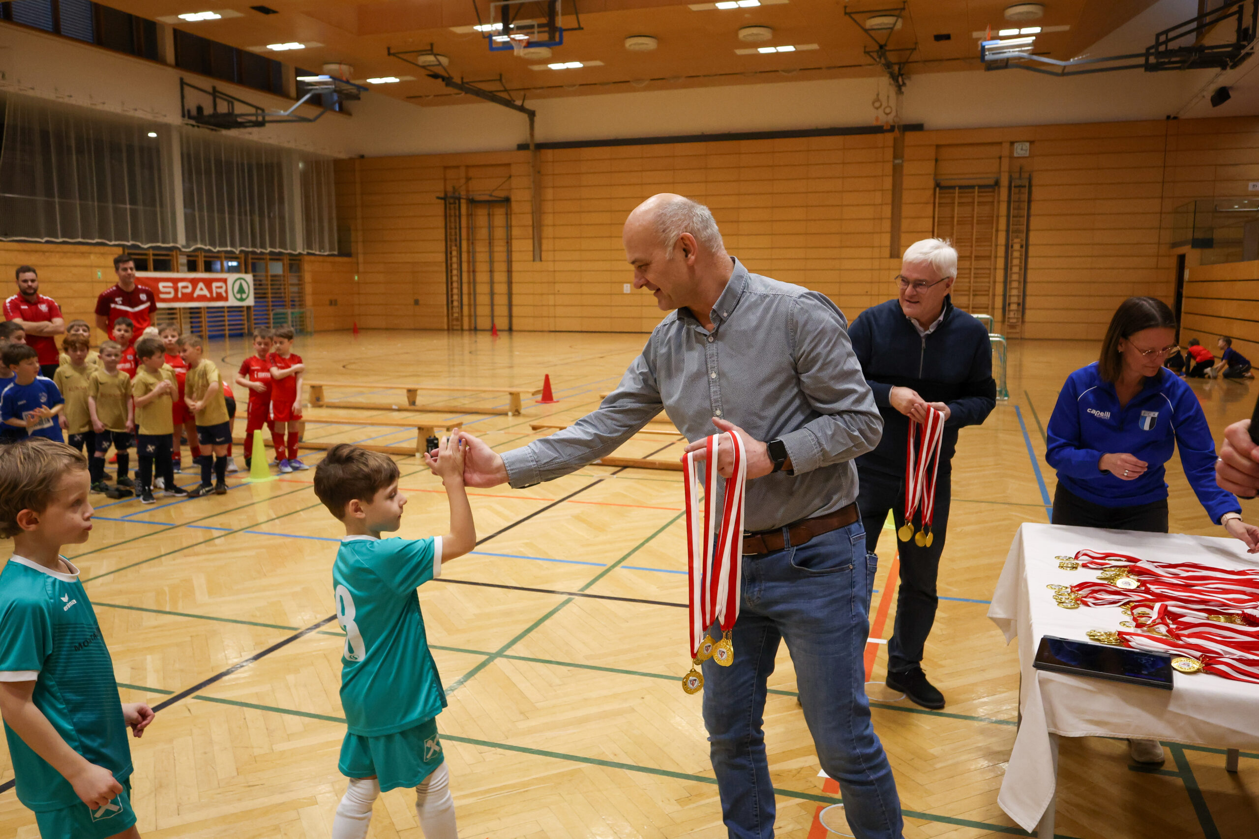Am Samstag dem 21.02.2026 fanden im Rahmen des TIWAG Tirol Nachwuchs Hallen-Cups zwei Turniere in Kufstein statt. Den Anfang machten die jungen Kicker der U7 Mannschaften, ehe am Nachmittag die U8 an der Reihe war. Der Name der Spielform Funino war auch an diesem Tag Programm. Denn neben viel Fußball, vielen Toren und vielen begeisterten Begleitern gab es vor allem viel Spaß. Die Leistung stand nicht an erster Stelle und so wurden nach den Turnieren auch alle Spielerinnen und Spieler gleichermaßen mit einer Medaille für ihre tollen Leistungen geehrt.