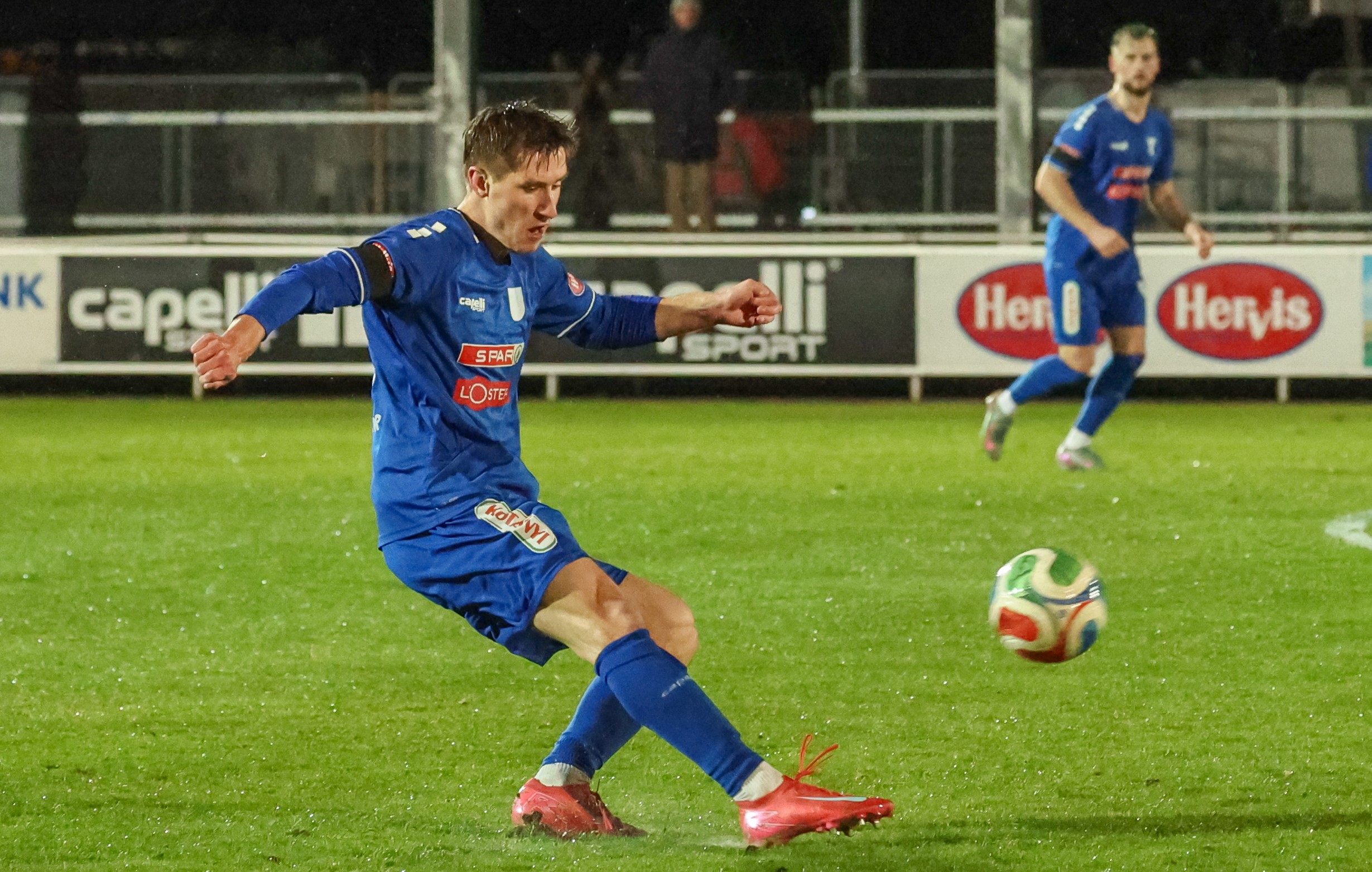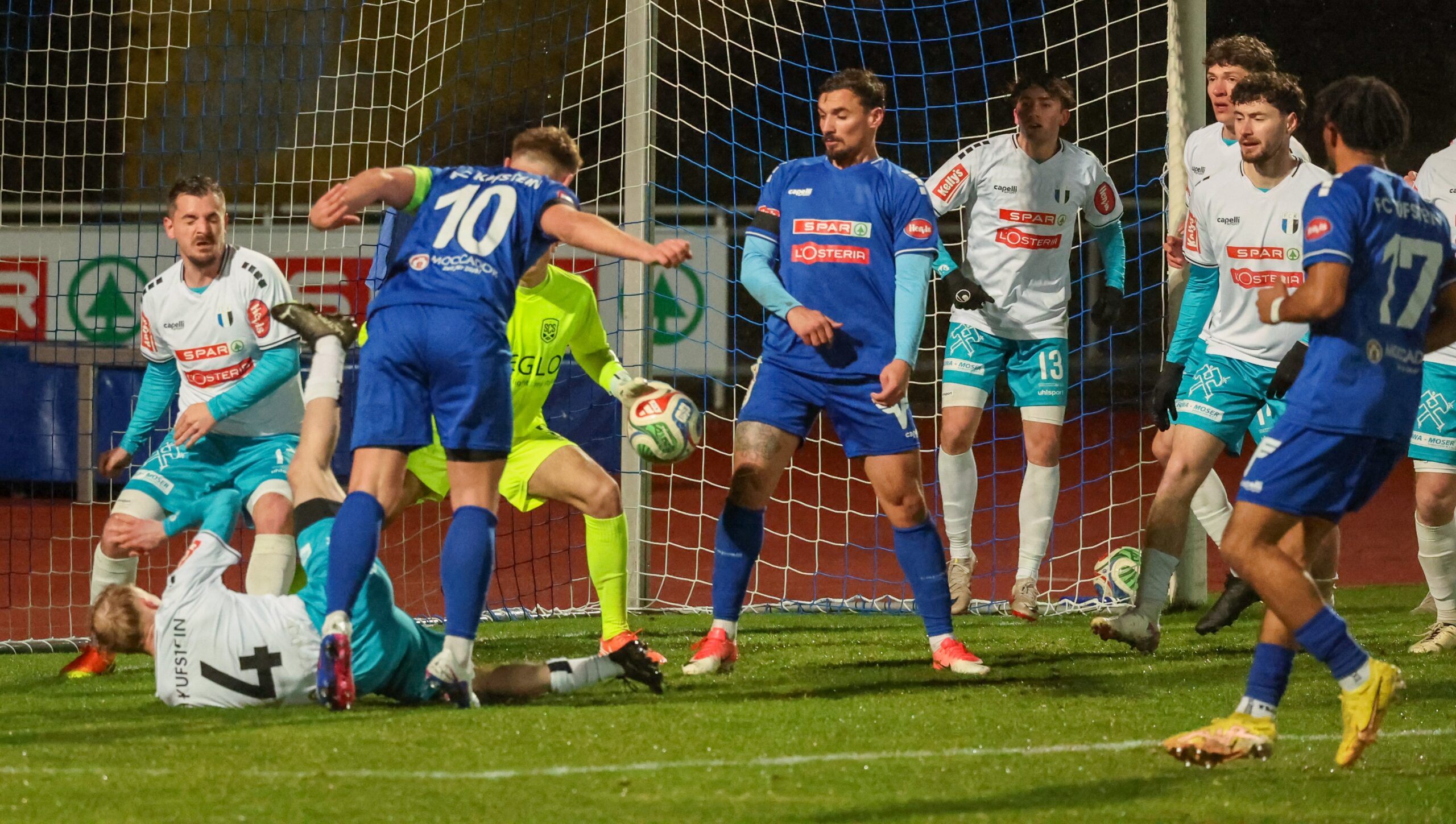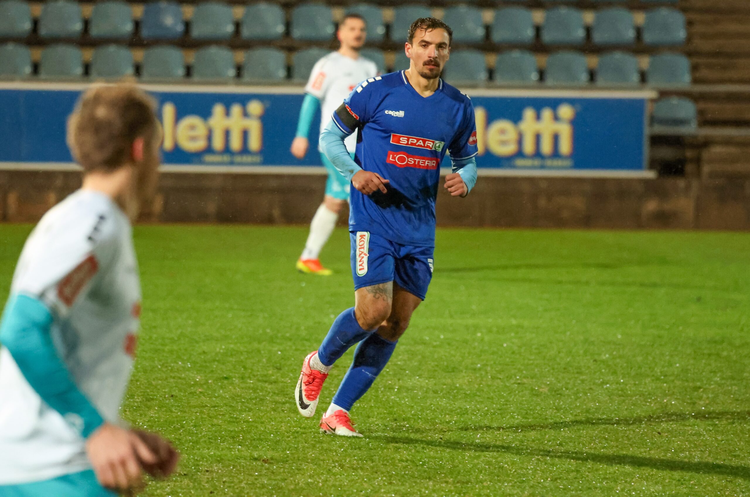 Die erste Hälfte war ein ausgeglichenes Spiel, in dem jede Mannschaft eine gute Möglichkeit vorfand. Die Gäste waren bereits in der 5. Minute durch Alak gefährlich, der nur ins Außennetz traf und bei unserer Mannschaft war es Prosic, der mit einem Weitschuss knapp über die Querlatte sein Glück versuchte. Mit 0 : 0 ging es in die Kabinen.