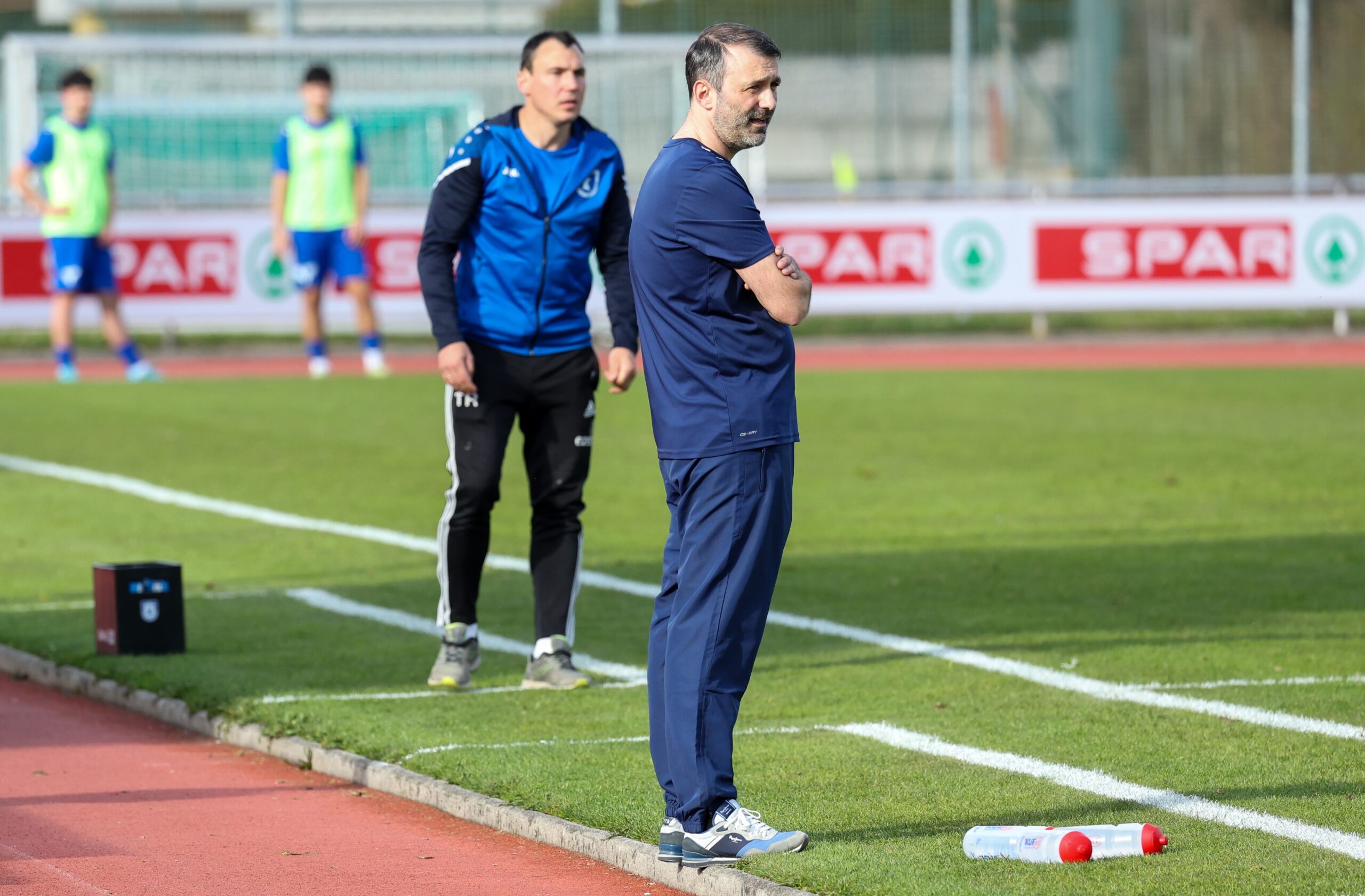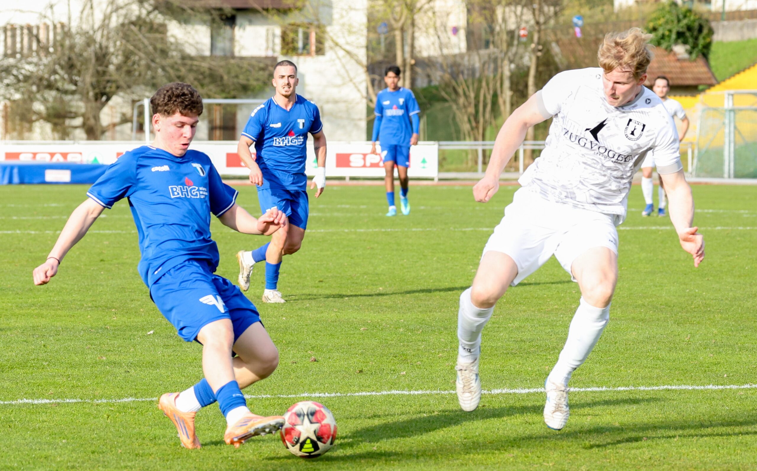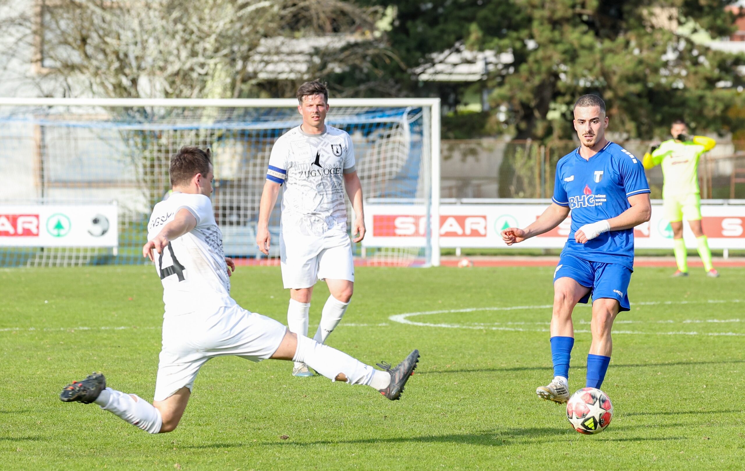 Nach der ersten Unachtsamkeit in der Hintermannschaft erzielte der ideal freigespielte Steiner bereits in der 7. Spielminute die Führung für die Gäste. In weiterer Folge entwickelte sich ein Mittelfeldgeplänkel mit vielen Fehlpässen und Fouls auf beiden Seiten, jedoch wenig Strafraumszenen. Kurz vor dem Halbzeitpfiff rettete Taso vor Steiner und verhinderte das 0 : 2.