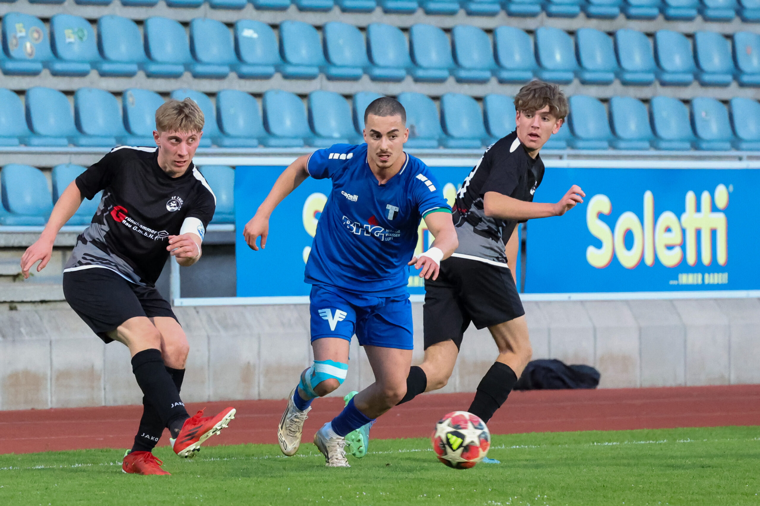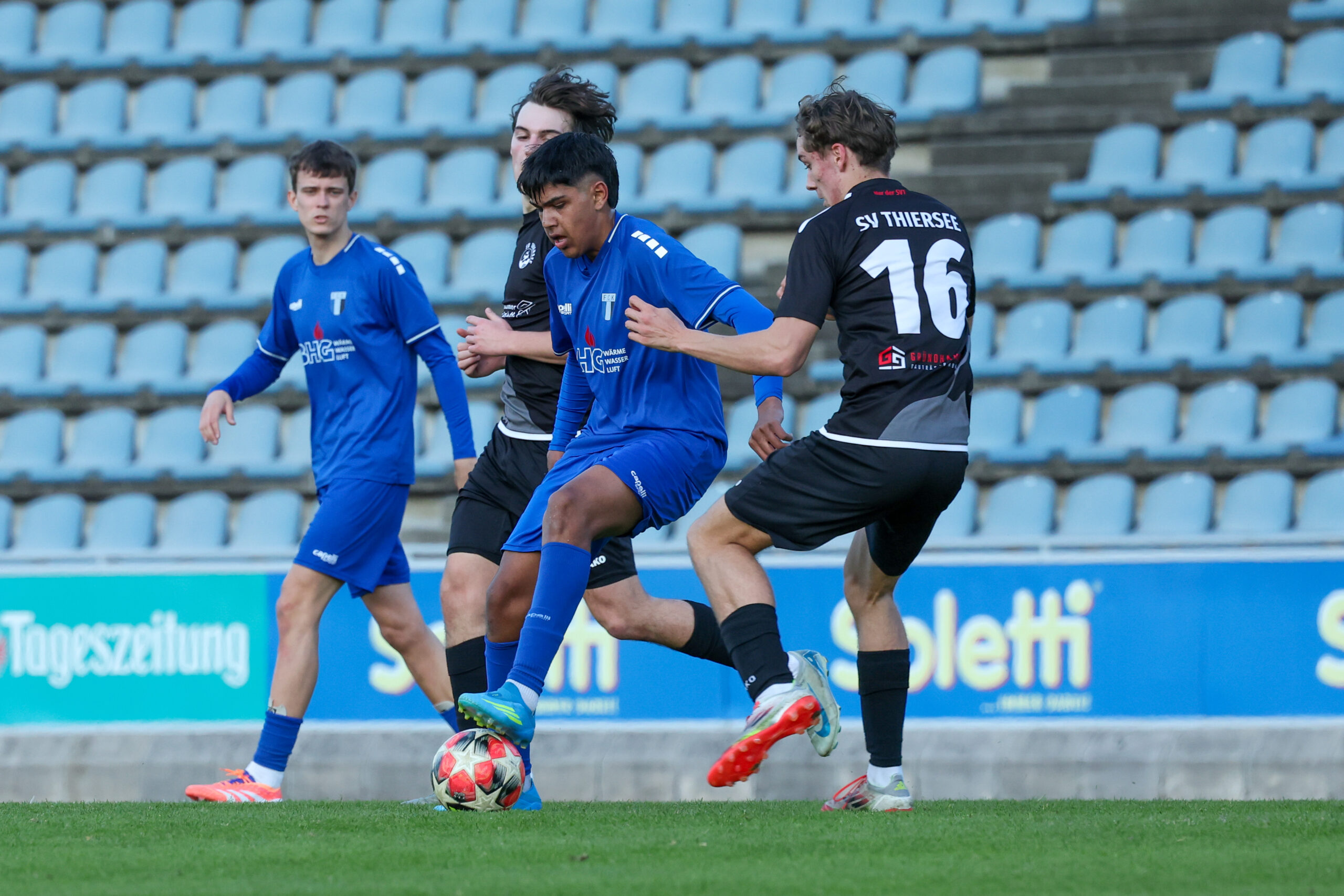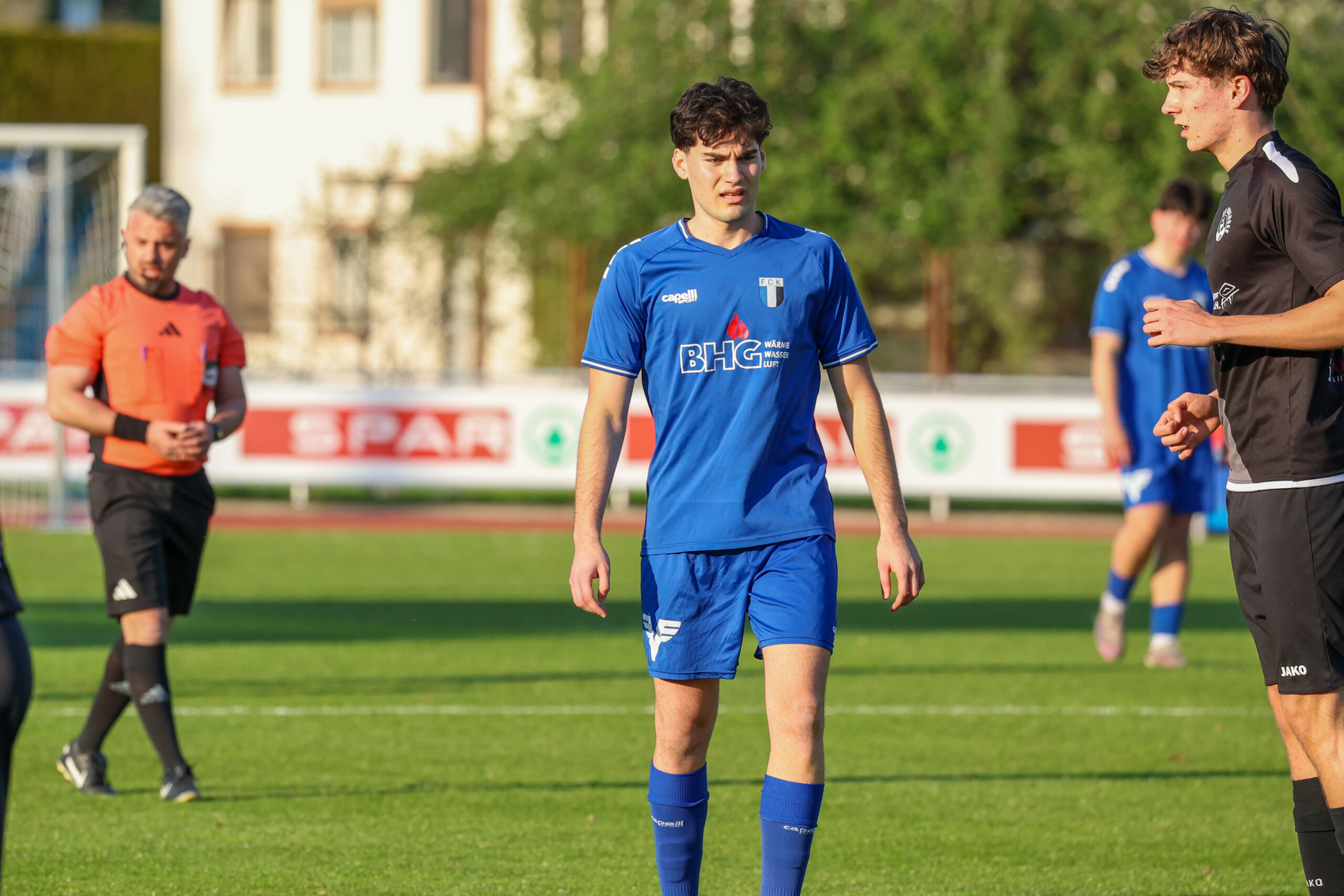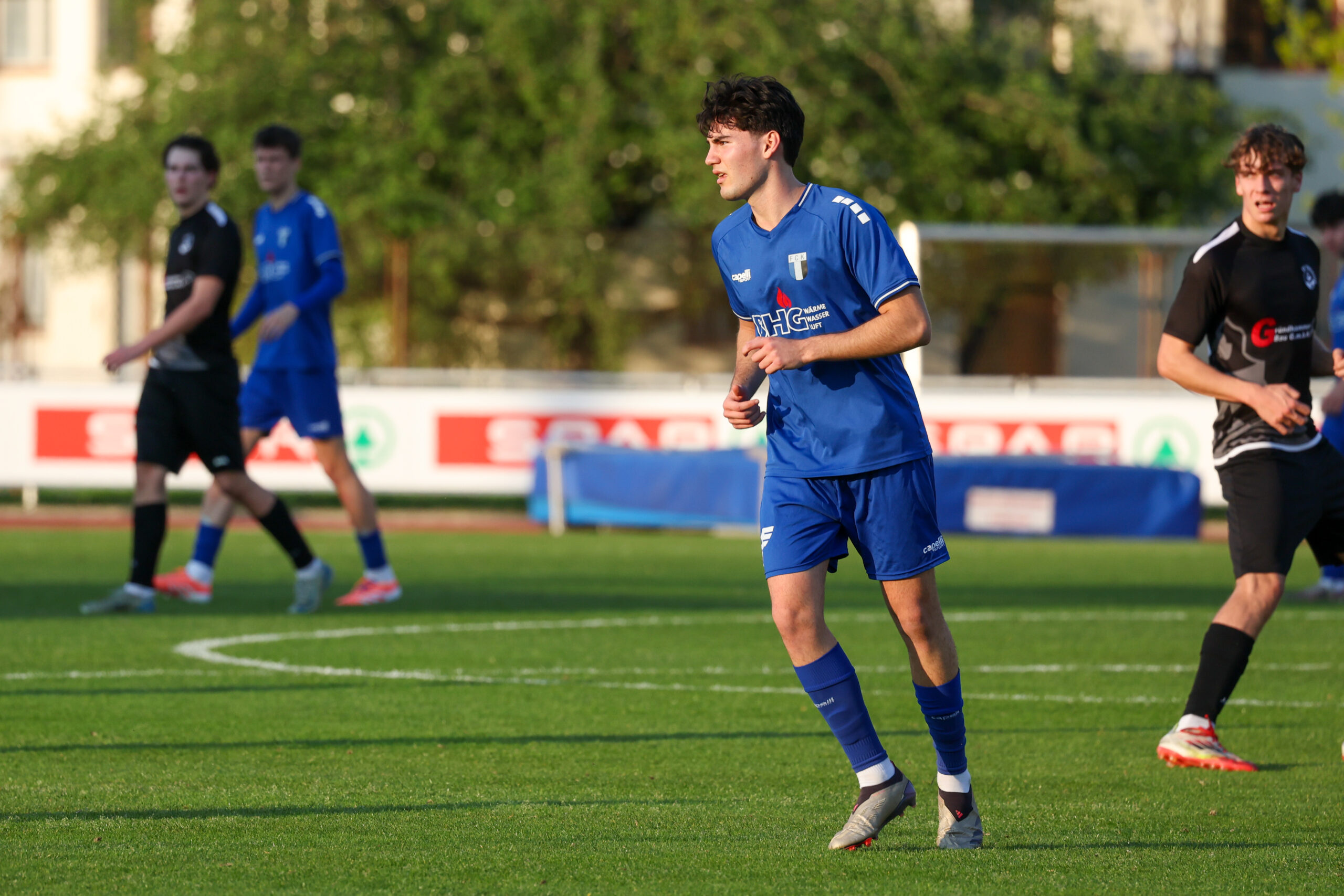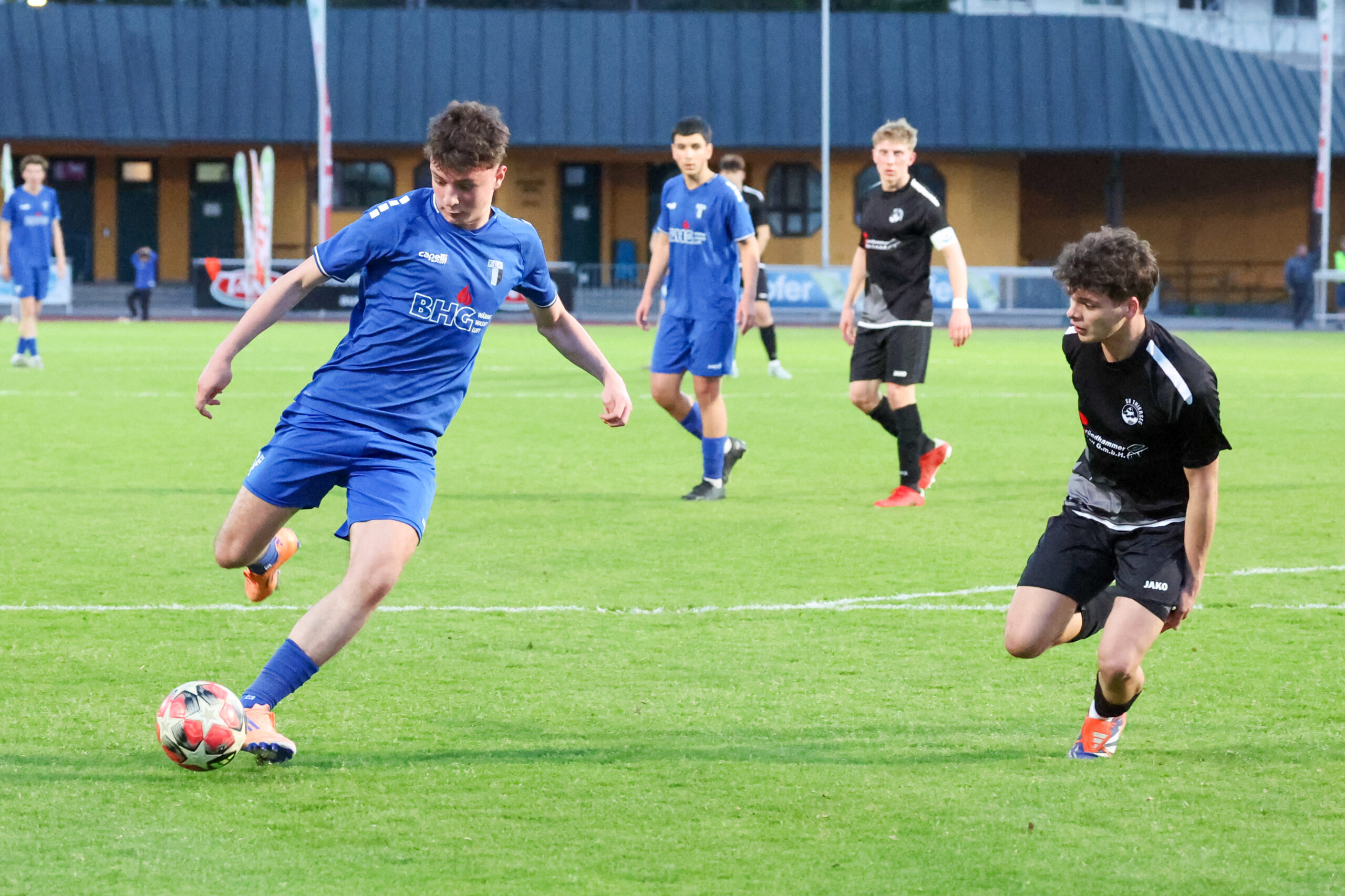 Nach ausgeglichenem Beginn übernahmen die Juniors das Kommando und hatten nach einem guten Angriff über rechts eine gute Möglichkeit, doch Demircioglu setzte den Ball neben das Tor (23.). Glück hatte unser Team in der 31. Minute, als sie mit vereinten Kräften den Ball von der Linie kratzten und zur Ecke klärten. Mit einem Doppelschlag von Beslic in der 35. und 37. Minute stand es plötzlich 2 : 0. Tormann Ekiz hielt die Mannschaft mit einer guten Abwehr weiter im Spiel und so ging es mit 2 : 0 in die Kabinen.