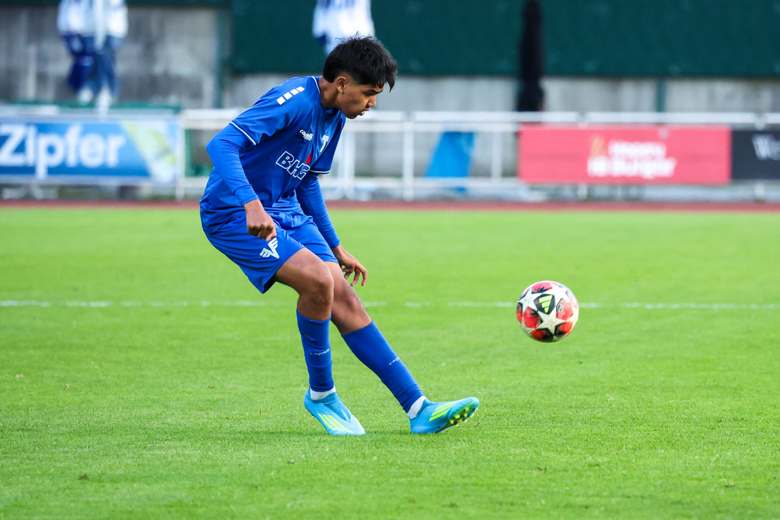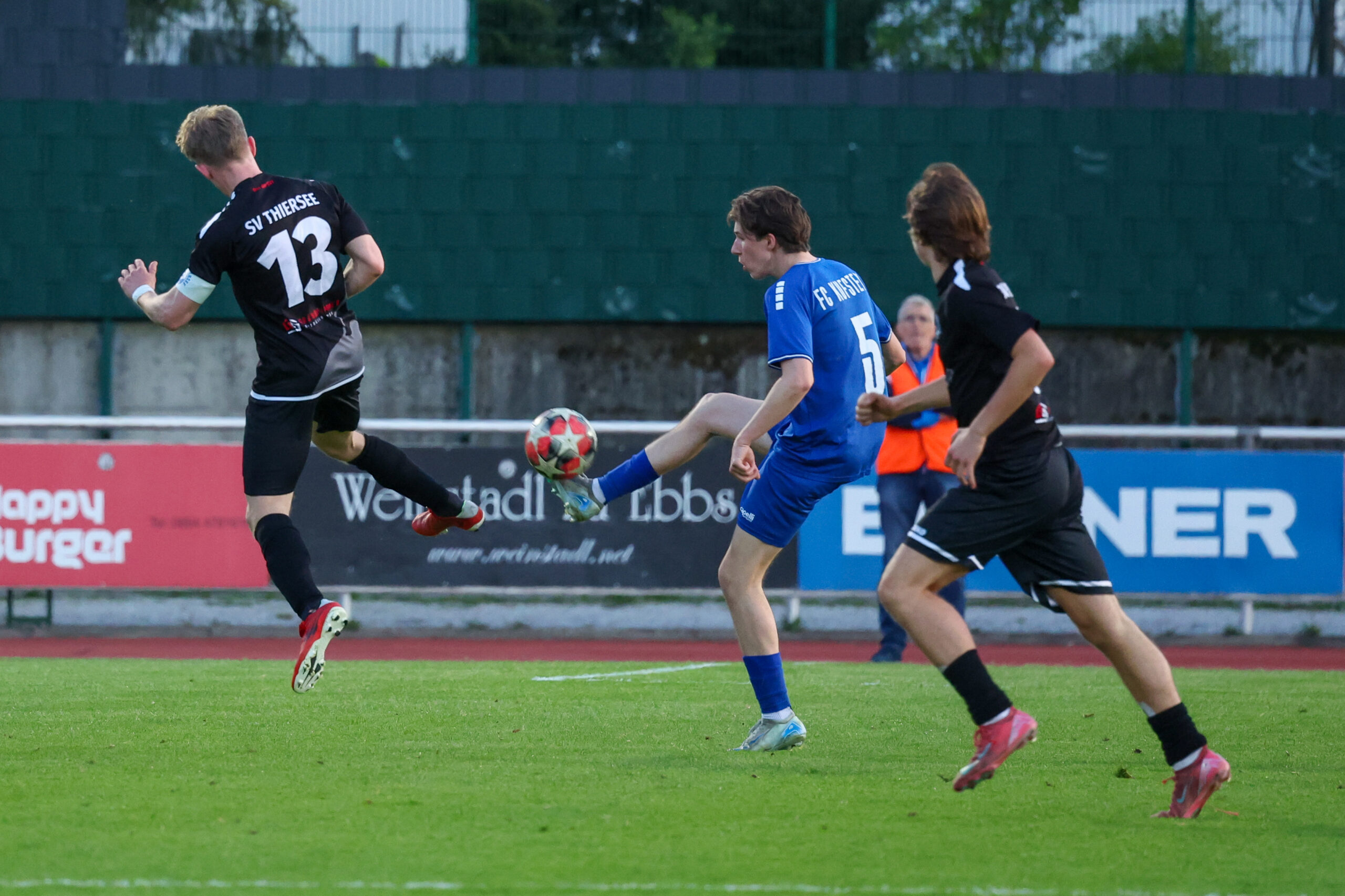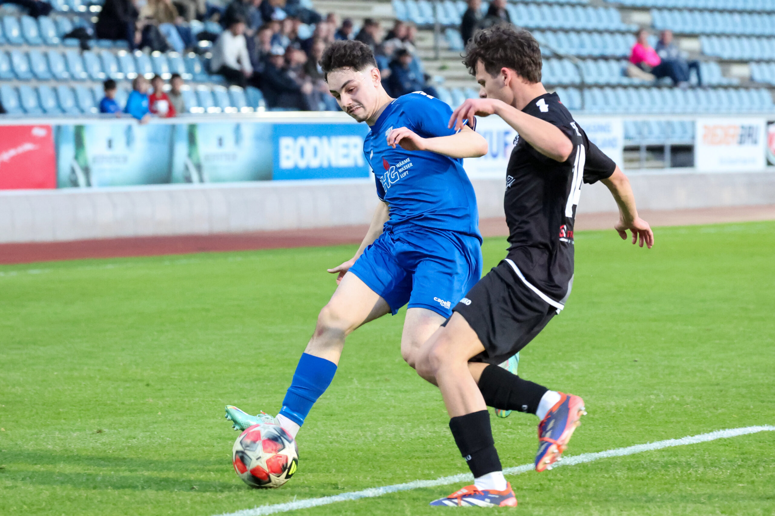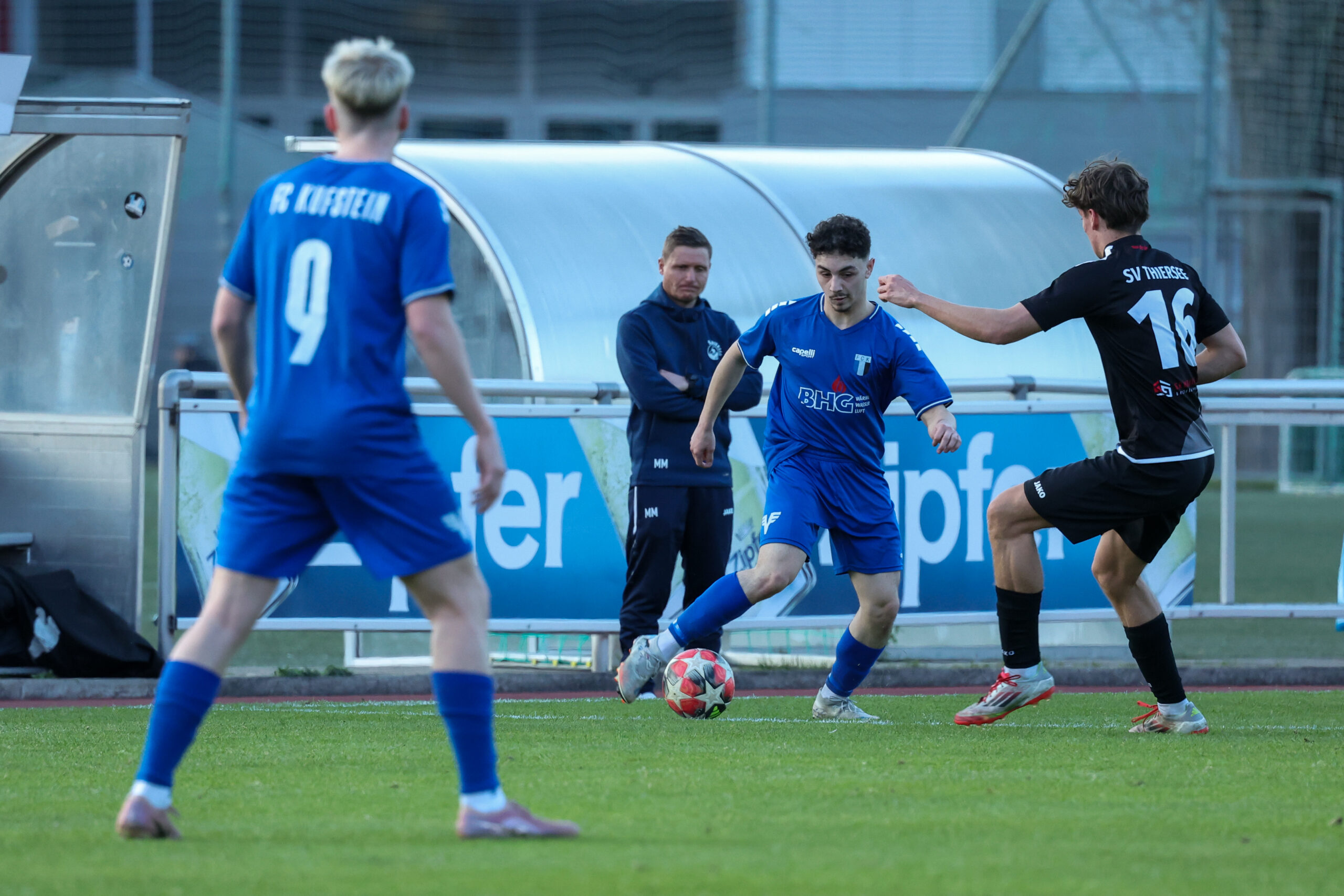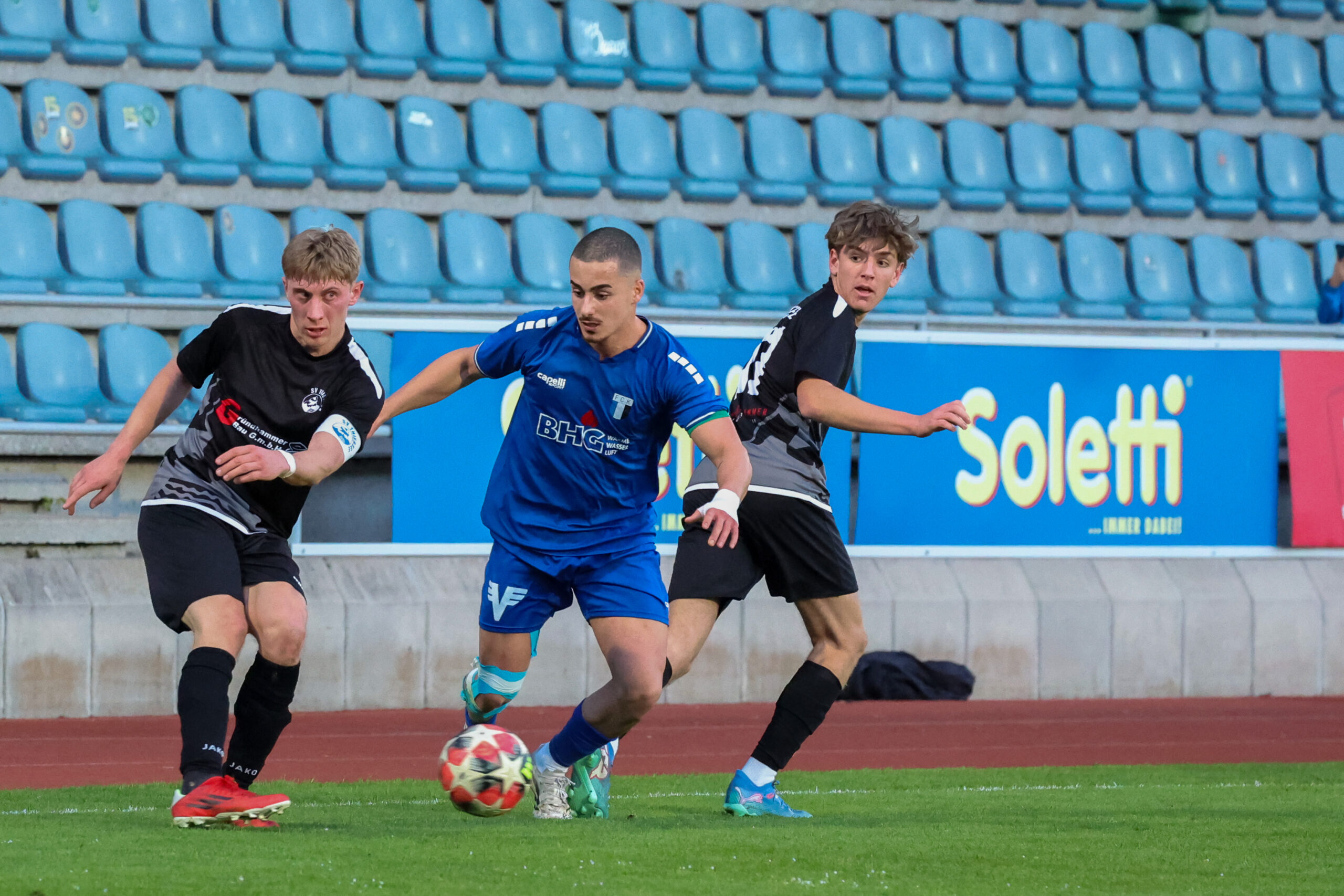 Nach ausgeglichenem Beginn übernahmen die Juniors das Kommando und hatten nach einem guten Angriff über rechts eine gute Möglichkeit, doch Demircioglu setzte den Ball neben das Tor (23.). Glück hatte unser Team in der 31. Minute, als sie mit vereinten Kräften den Ball von der Linie kratzten und zur Ecke klärten. Mit einem Doppelschlag von Beslic in der 35. und 37. Minute stand es plötzlich 2 : 0. Tormann Ekiz hielt die Mannschaft mit einer guten Abwehr weiter im Spiel und so ging es mit 2 : 0 in die Kabinen.