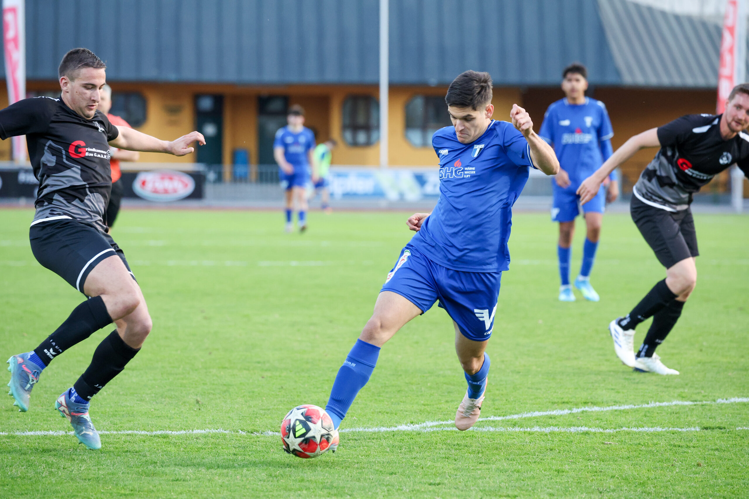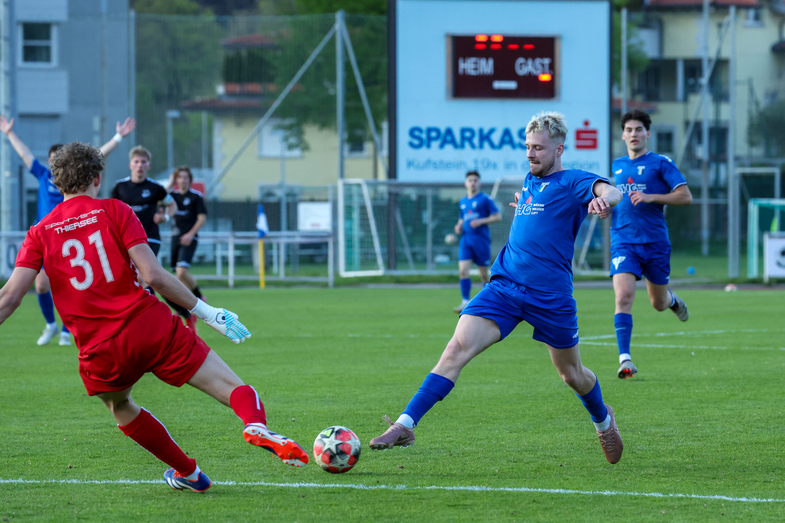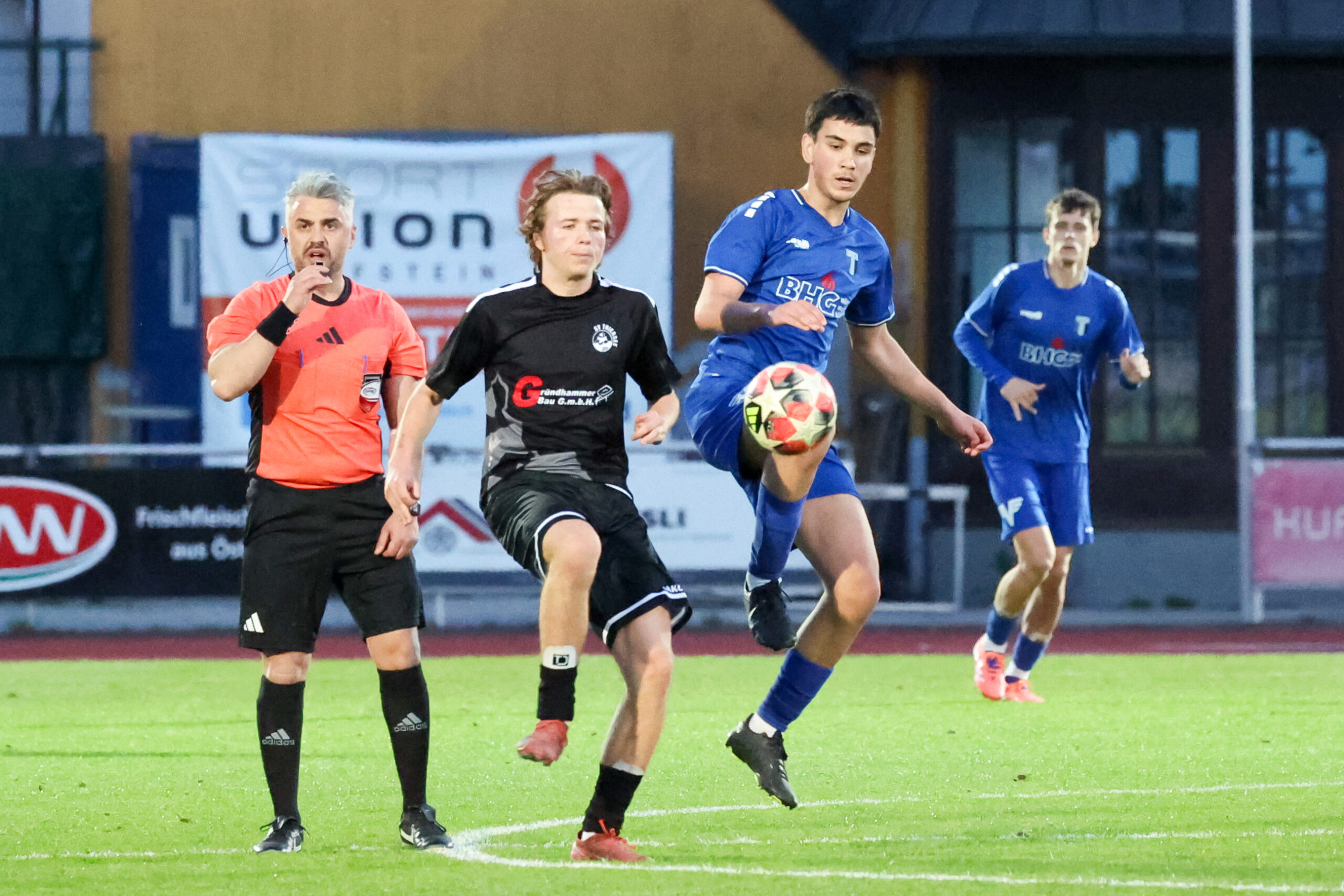 Nach Wiederbeginn entwickelte sich ein flottes Spiel mit einem ständigen Hin und Her. Die Gäste hatten in der 53. Minute die Chance zum Anschluss, doch Paul verfehlte den Ball. Besser machte es Gruber, der den Ball in der 57. Minute im Tor unserer Mannschaft unterbringen konnte und auf 2 : 1 verkürzte. Die Gäste wollten unbedingt noch Punkte holen, sodass es weiterhin hin und her ging. Unsere Mannschaft konnte manche Entlastungsangriffe nicht sauber zu Ende spielen und so blieb es beim knappen, aber nicht unverdientem Sieg.