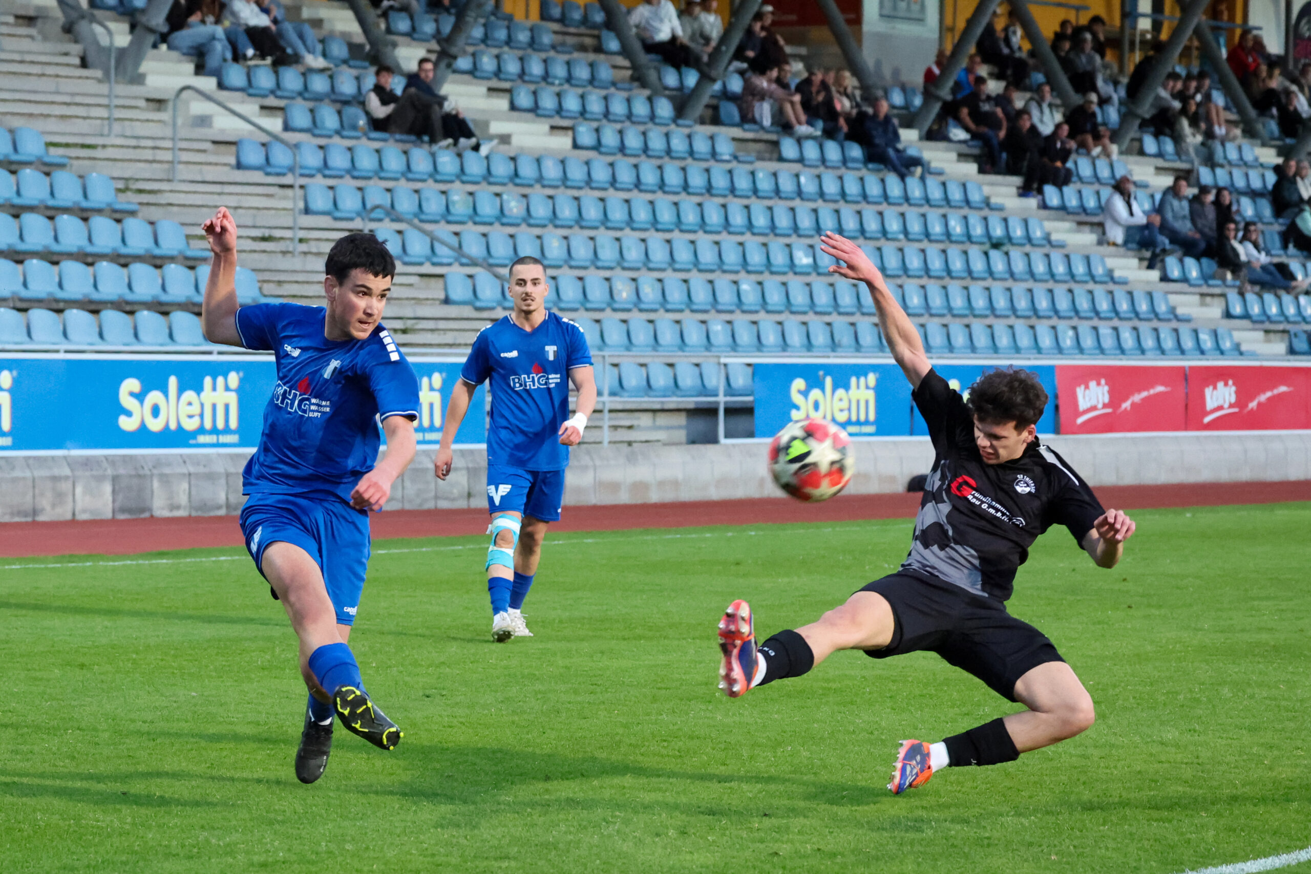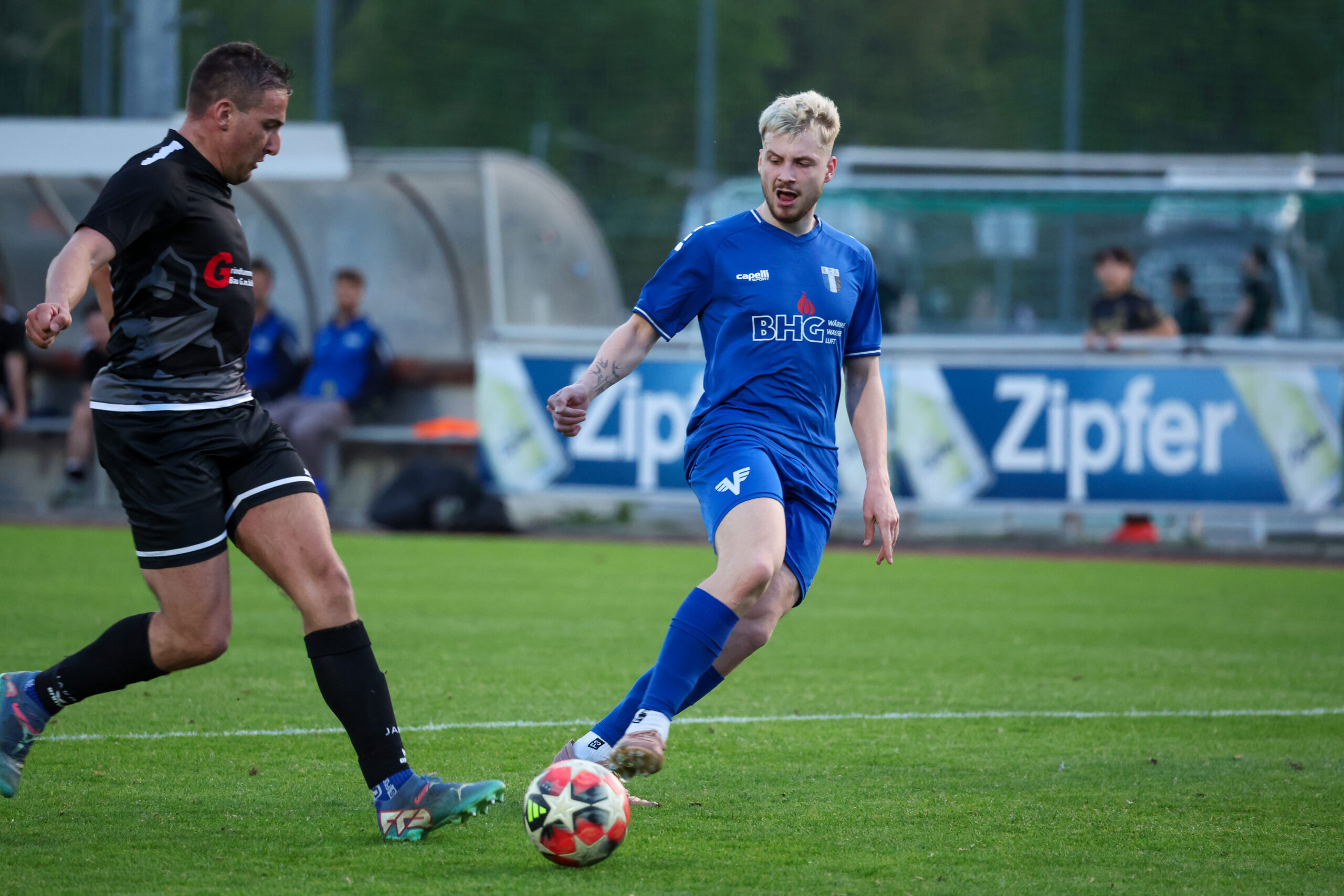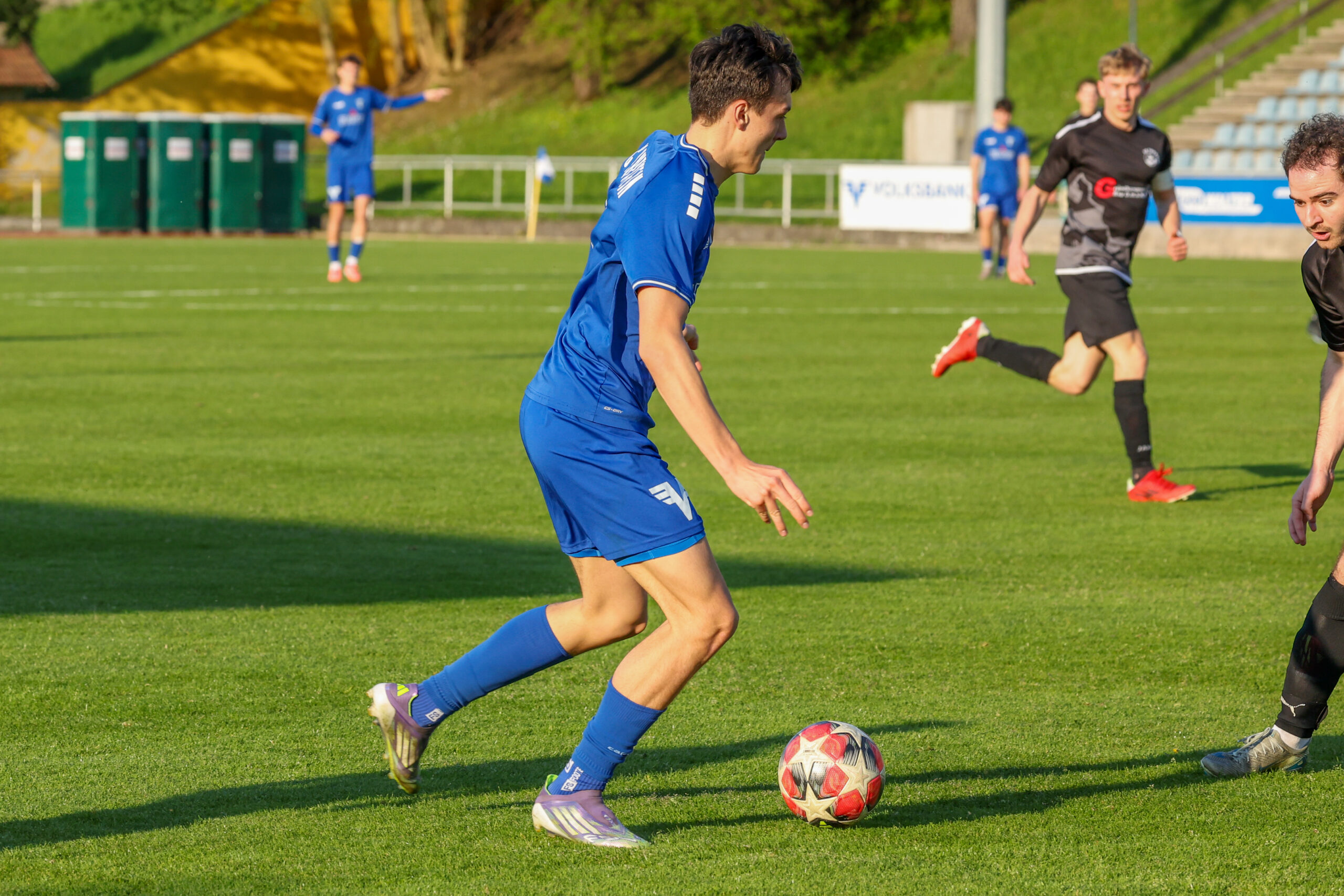 Nach Wiederbeginn entwickelte sich ein flottes Spiel mit einem ständigen Hin und Her. Die Gäste hatten in der 53. Minute die Chance zum Anschluss, doch Paul verfehlte den Ball. Besser machte es Gruber, der den Ball in der 57. Minute im Tor unserer Mannschaft unterbringen konnte und auf 2 : 1 verkürzte. Die Gäste wollten unbedingt noch Punkte holen, sodass es weiterhin hin und her ging. Unsere Mannschaft konnte manche Entlastungsangriffe nicht sauber zu Ende spielen und so blieb es beim knappen, aber nicht unverdientem Sieg.